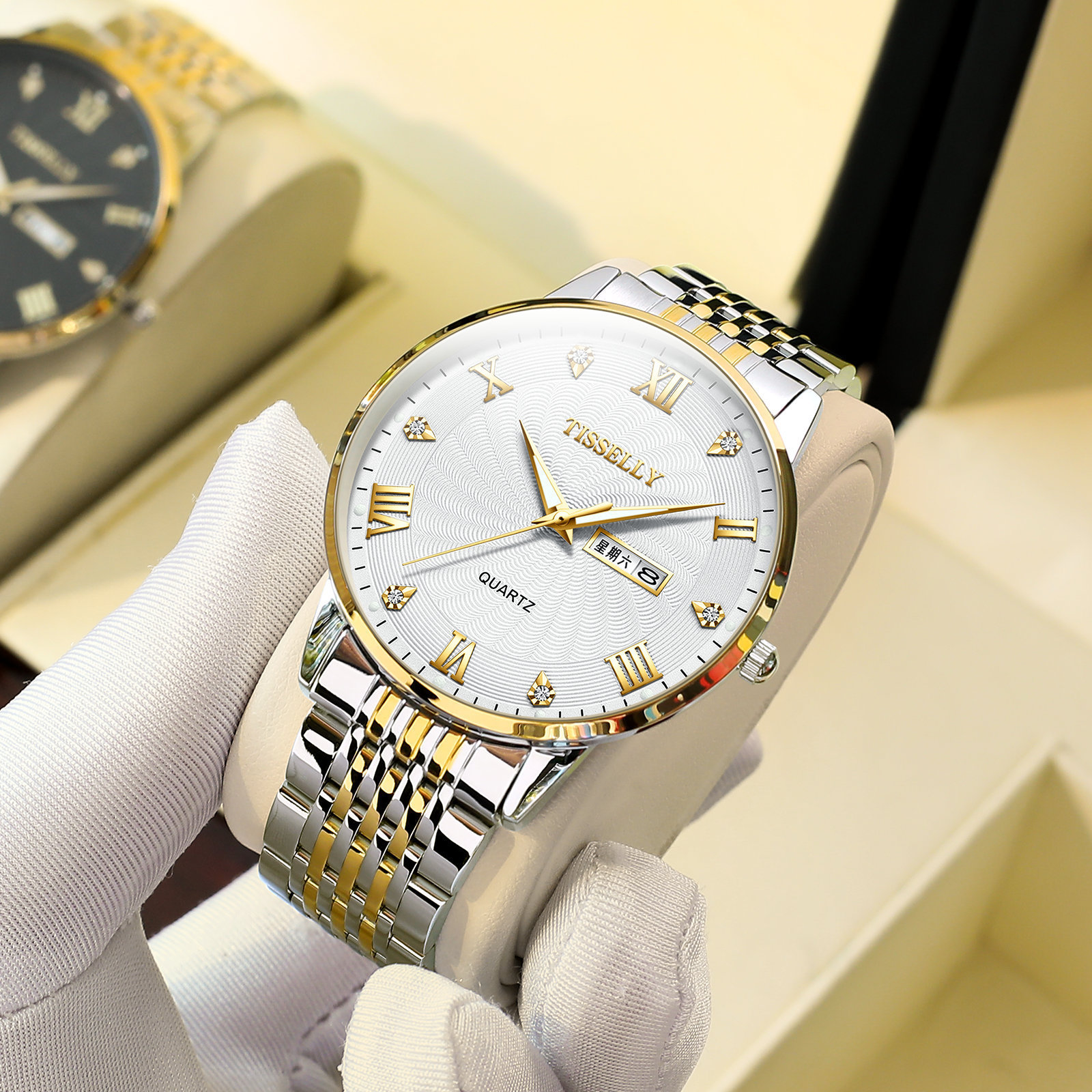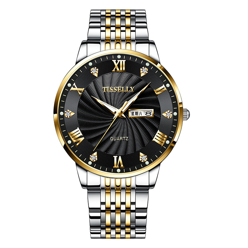 A Drop Shipping Quartz Watch Steel Band Double Calendar Men’s Watch Waterproof Wholesale Luminous Explosion Type Domineering Automatic