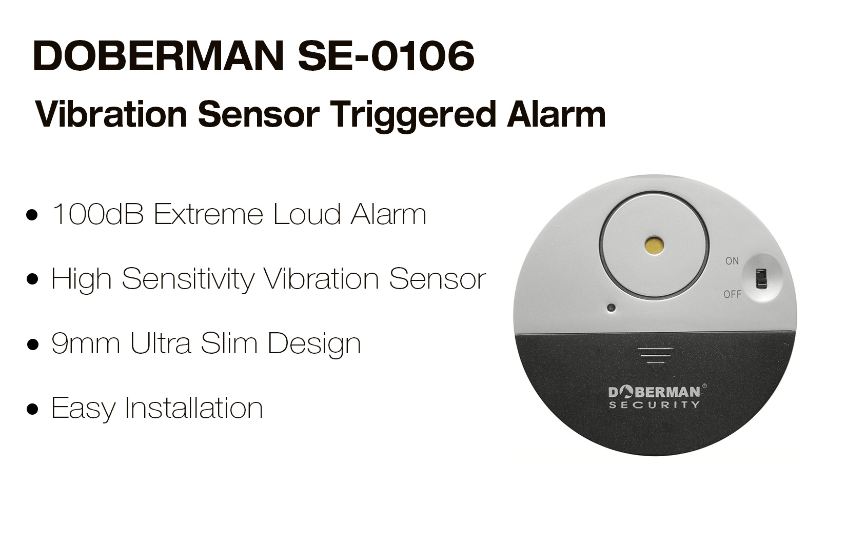 DOBERMAN SECURITY SE-0106 100dB Electronic Wireless Vibration Sensor Home Security Door Window Alarm   DOBERMAN SECURITY SE-0106 100dB Electronic Wireless Vibration Sensor Home Security Door Window Alarm DOBERMAN SECURITY SE-0106 100dB Electronic Wireless Vibration Sensor Home Security Door Window Alarm