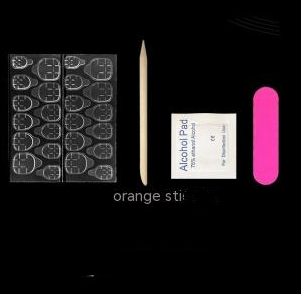 Nail sticker + paper box + alcohol bag + nail file + wooden stick
