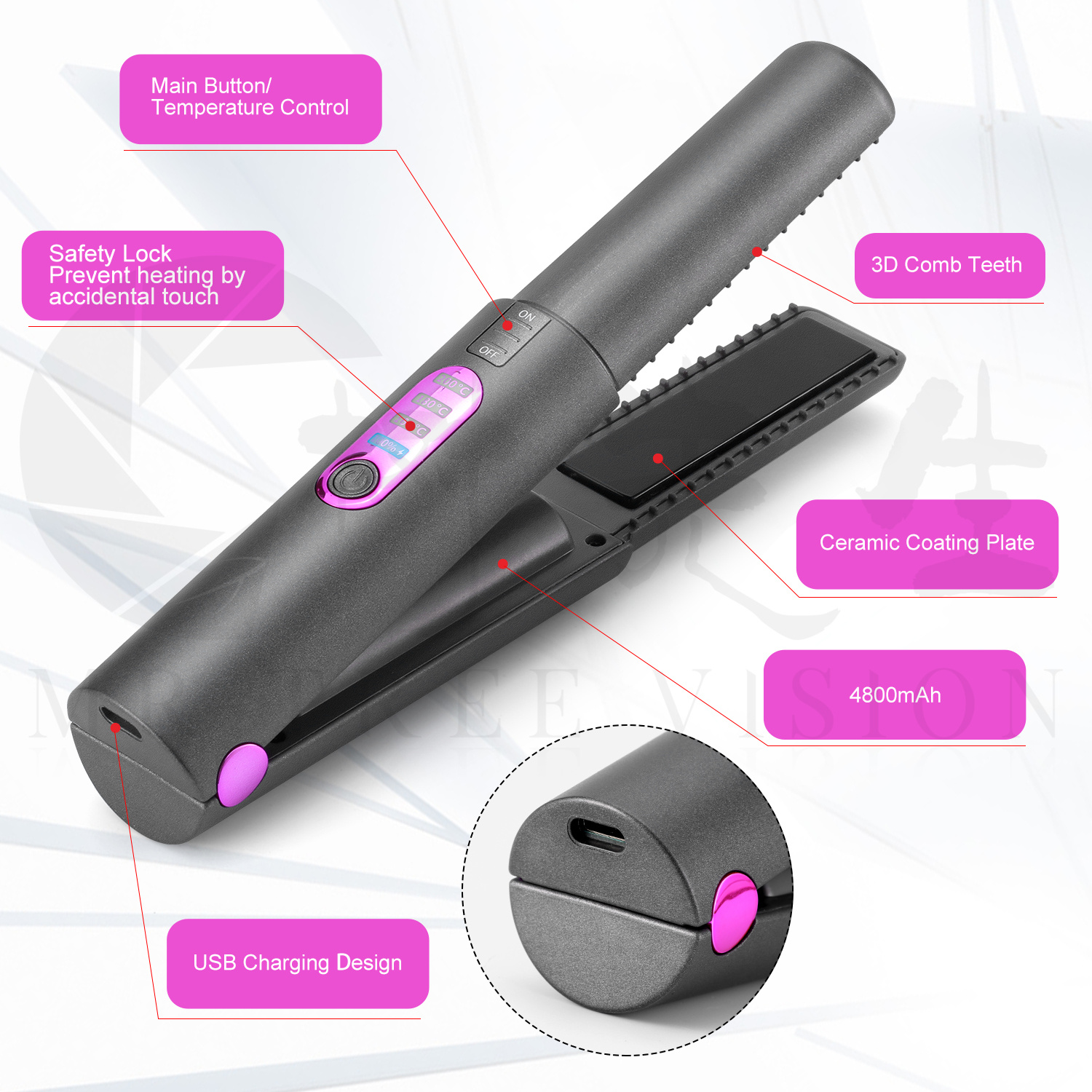 New Arrivals USB Charge Mini Wireless Travel Iron Ceramic Home Hair Straightener Machine