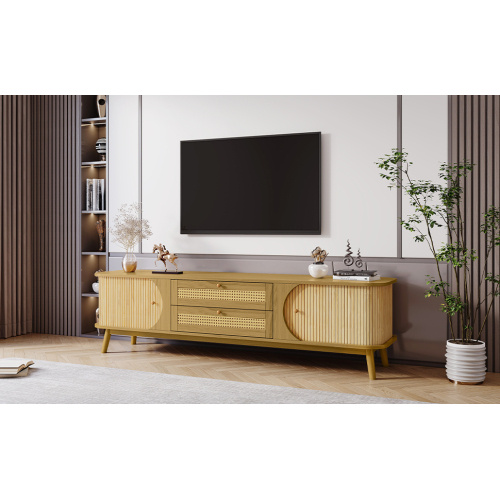 - [Modern Design] Our beautiful and elegant rattan TV cabinet adds timeless elegance to your living space. Designed with attention to detail, this beautiful piece of furniture will add a warm and natural feel to your home. The combination of brown and warm wood tones gives your room a harmonious look that can be easily integrated into different interior styles.